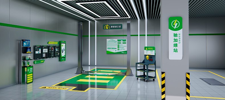 驰加绿站通过分阶段、持续支持的方式,帮助门店实现从传统维修向新能源汽车服务的平稳过渡。它不仅提供硬件支持,如绝缘工位地垫、新能源教育展板、新能源汽车电池检测枪等。还提供专属工位装修方案形象支持、电车四大保养技术培训及认证、电车顾客接待流程,车辆安全检查和沟通话术运营支持等全方位服务。