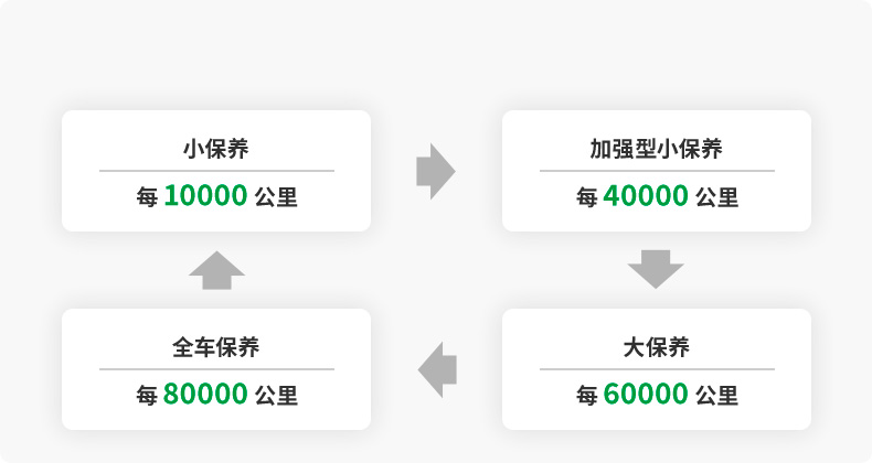 驰加业内首创电车专用定期保养里程表,是基于国内畅销的10余款主流电车车型的售后指导意见汇总、分析、总结、延伸后的倾情打造,它直观地显示了每个里程段的维保项目。